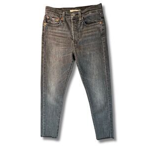 Levi’s Wedgie Jeans Women's 27 x 26 Faded Black Button Fly Raw Fray Hem Stretch