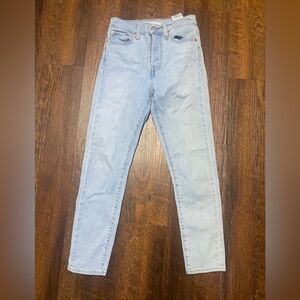 Classic high rise fit. Light blue denim. Iconic Levi's style.