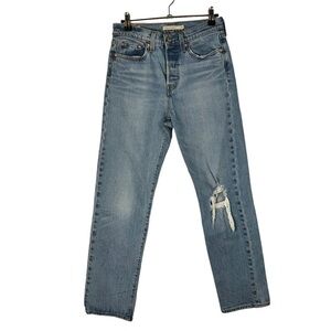 Levi's Wedgie Light Wash Distressed Knee Straight Leg Jeans 25