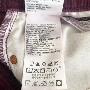 Levi's Wedgie Potent Purple Bleach Dye Straight Leg Corduroy Pants