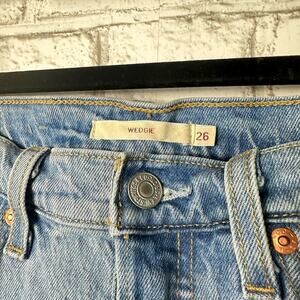 Levi’s Wedgie Premium Jeans Skinny Straight Crop Raw Hem Button Fly Blue 26