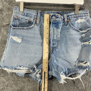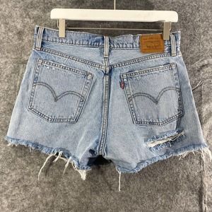 Levis Wedgie Short 31 Light Blue Denim High Rise Distressed Jean Cutoff