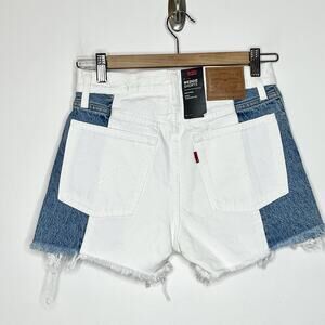 Levis Wedgie Shorts Womens 24 Patchwork Cutoff High Rise Denim Jean Colorblock