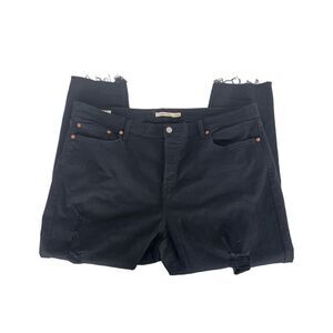 Levi’s Wedgie Skinny Fit Black Raw Hem Jeans, slightly cropped, high rise, button fly, plus size 22, in good condition