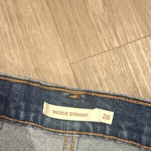 Stylish straight leg jeans by Levi's. Timeless blue color. Ideal for casual wear.