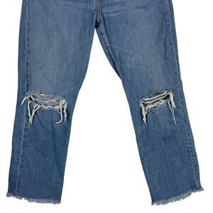 Levi's Wedgie Straight Button Fly Jeans Sz 28 Big E Distressed Raw Hem Cropped