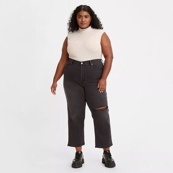 Levi’s Wedgie Straight Fit Jeans Plus Size 18W in Cut and Dry Black Distressed Cropped