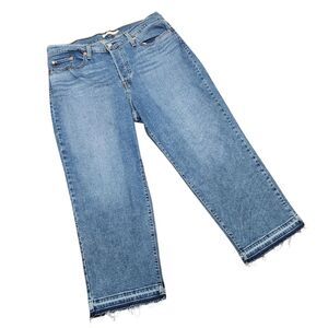 Levi's Wedgie Straight Fit Women's Jeans Raw Hem Blue Denim Cropped High Rise 18