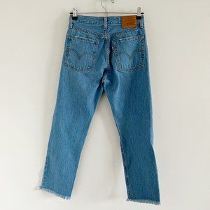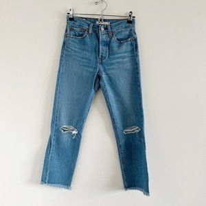 Levi's Wedgie Straight High Rise Crop Jean 25 Blue 100% Cotton Distressed