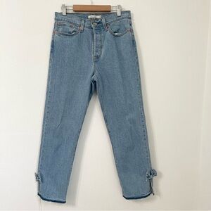 Levi's Wedgie Straight Jean With Bow Raw Hem High Rise Classic Denim Size 28