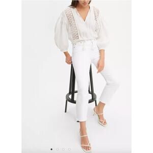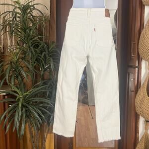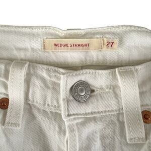 Levi’s Wedgie jeans, Levi's straight leg jeans, white Levi’s jeans, high rise denim, raw hem ankle jeans, Y2K Levi’s, festival denim, 90s style jeans, classic white jeans, straight leg Levi’s, women’s size 27 jeans, cropped denim pants, summer denim, ankle length jeans, minimal closet staples, Levi’s denim, vintage inspired jeans, rigid Levi’s fit, Levi’s 501 inspired, Levi’s premium jeans, Levi's streetwear, wardrobe essentials, light academia style, off-duty model outfit, clean girl aesthetic, retro fit jeans, Levi’s Y2K fashion