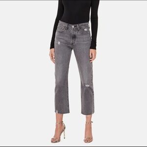 Levi’s Wedgie High Rise Cropped Straight Fit Jeans faded black distressed destroyed straight leg Jeans