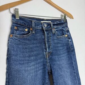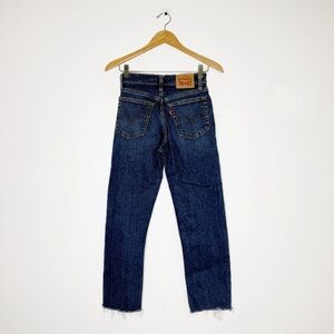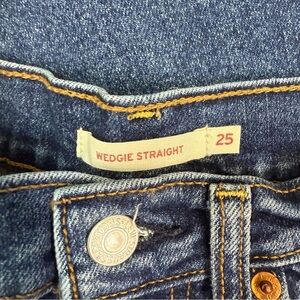 Levi’s Wedgie jeans, high rise jeans, straight leg denim, distressed jeans, size 25 jeans, Levi’s button fly, raw hem jeans, Levi’s W25, vintage fit jeans, Levi Strauss