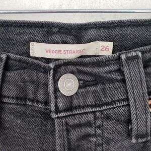 Levis Wedgie Straight Jeans Womens 26 Black Distressed Ripped Knee Button Fly