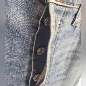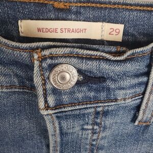 Levi's Wedgie Straight Light Washed Button Up Fringed Hem Jeans Sz 29