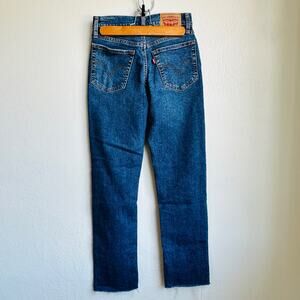 Levi's, jeans, high rise, high waisted, strech, distressed, raw hem, cropped, button fly, comfort, classic, denim