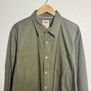 Levi's Western Denim Cotton Button Up Shirt Men XL Green Country Outdoor Workwear Top