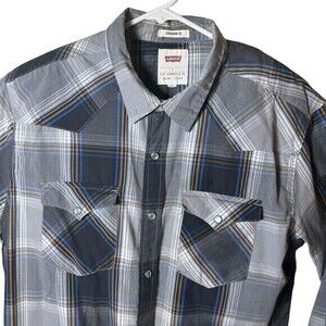 Levis Western Pearl Snap Gray Plaid Long Sleeve L Regular Fit Shirt