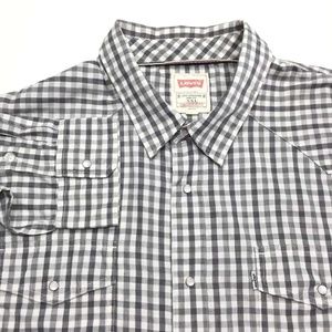 Levis Western Pearl Snap Shirt Modern Plaid Cowboy Mens