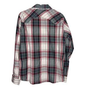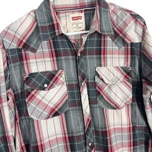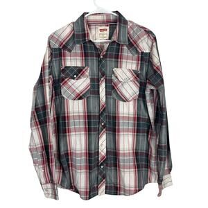 Levi’s Western Snap Shirt Men’s M Plaid Red Gray Long Sleeve Pearl Snap Cowboy