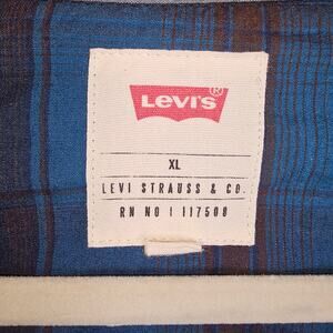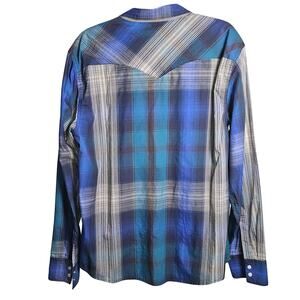Levis Western Snap Up Collared Shirt Blue Gray and Black Size XL PTP 23 Lgth 30
