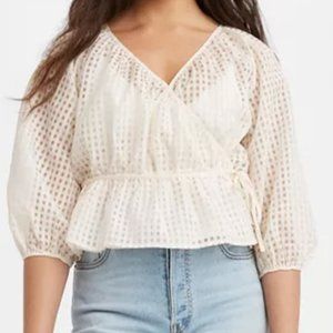 Levi’s White Delilah Wrap Top Puff Sleeve Sheer Windowpane Sugar Swizzle XS