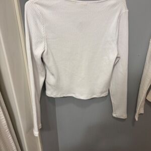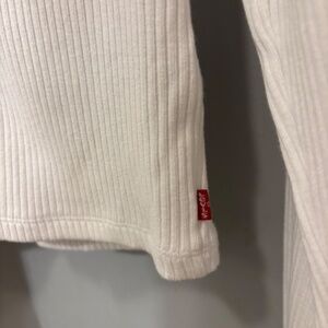 ✨ NWT Levi’s white ribbed button-up top — cropped, fitted, and effortlessly Y2K! Long sleeve with stretch fabric for that perfect early-2000s vibe. Style with baggy jeans, mini skirt, or cargos for an on-trend look.