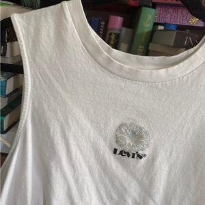 Levi's White Sleeveless Top daisy retro graphic T-shirt vintage tee