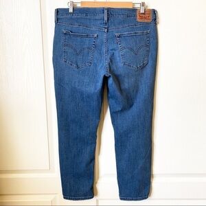 Levi’s Woman’s Distressed Boyfriend Jeans in medium wash. Manufactured distressing and blown out knee. Traditional 5-pockets and button zip closure. In very good preloved condition.