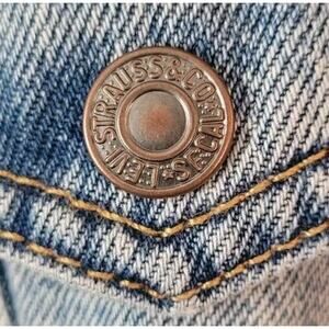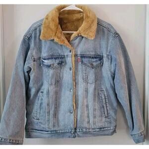 Levis Womans Sz. S Faux Fur Lined Denim Trucker Jacket Reversible EU. This is in nice condition. Very warm. Great for winter or even cool fall mornings. Great worn vintage look. Pockets inside and out.