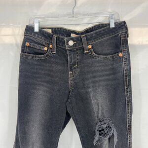 Levis Women 31 Noughties Bootcut Jeans Distressed Black Faded Whiskering Flare
