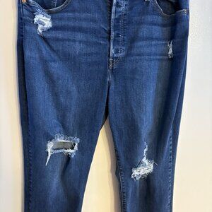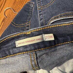 Levis Women Plus Sz 20W Dark Indigo Destructed Ribcage Straight Ankle Jeans.