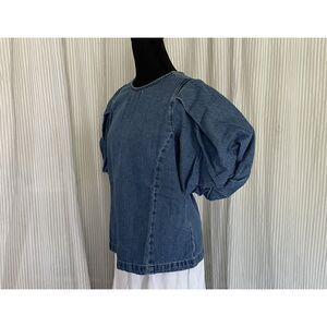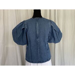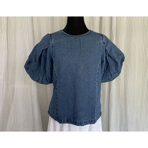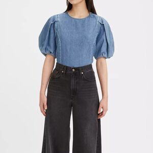 Levi's Women Small Puff Sleeve Zaida Sculptural Denim Blouse Western Boho Minimalist