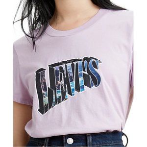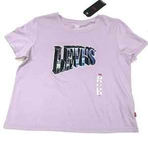 Levi's Women Sz M Cotton Graphic T-Shirt Cropped Crewneck Tee Casual Lavender