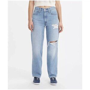 Levi's Women's 28 Mid-Rise '94 Baggy Straight Jeans Blue Distressed Denim