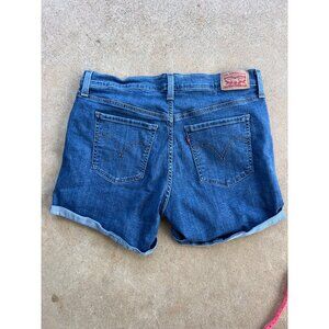Levis Womens 31 Mid-Length Denim Shorts Distressed Blue Jean Casual Wear R3