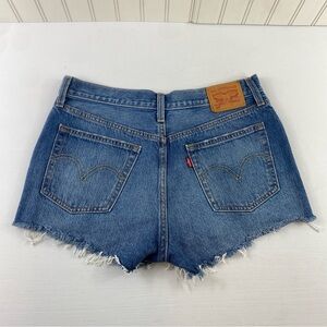 Levis Women’s 501 Button Fly Raw Hem Blue Denim Jean Cut Off Shorts Sz 29