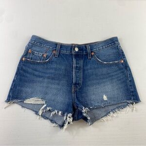 Levis Women’s 501 Button Fly Raw Hem Blue Denim Jean Cut Off Shorts Sz 29