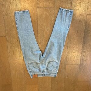 Stylish light blue jeans with a distressed design. Perfect for casual wear.