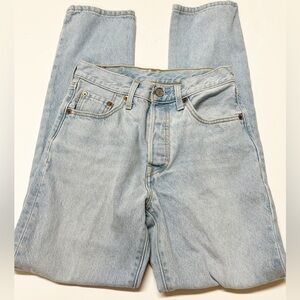 Levis Womens 501 Light Wash Floral Patch Distressed Mid Rise Denim Jeans Size 24