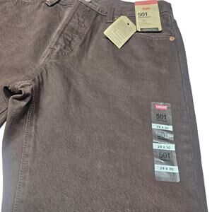 This is a pair of BRAND NEW Levi's 501 jeans in brown denim. The size is 29W x 30L. The jeans are rare and have a vintage look. The straight leg jeans feature a raw hem and 5-pocket styling. RETAIL $79.50.