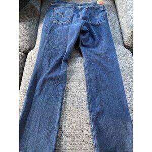 Levis Womens 505 Straight Leg Jeans Size 16 Blue Denim Mid-Rise Waterless Design