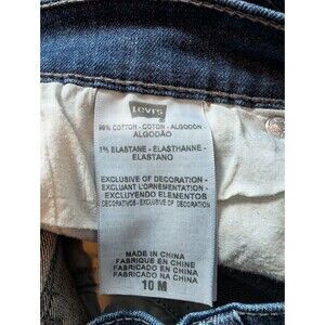 These Levi's Women's 515 Bootcut Jeans in size 10 feature a mid-rise design with metal studs and a dark wash blue color. Made of denim fabric with spandex for stretch, these jeans offer a comfortable fit and feature a 5-pocket design. Perfect for a hipster or 90s-inspired look, these jeans embody a stylish and timeless appeal.