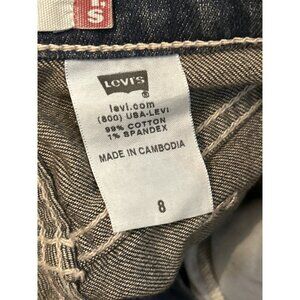 These Levi's 515 denim shorts offer a classic yet contemporary style, paired with a unique beaded belt for added flair. Crafted from durable cotton with a touch of spandex, they provide comfort and flexibility. Ideal for warm-weather outings, these shorts are a versatile wardrobe staple.
