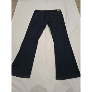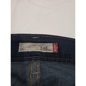 The Levi's Women's 545 Low Boot Cut jeans in size 14 are a stylish and flattering choice for women. With a regular size type and a waist size of 38 inches, these dark blue jeans feature the classic Levi's brand and a bootcut style that is both comfortable and on-trend. The Levi's 545 model offers a timeless look that can be dressed up or down for any occasion, making them a versatile addition to any woman's wardrobe.