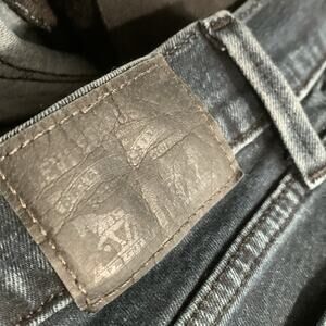 Super skinny fit with zipper button fly. Front and back pockets. Super dark wash That is blue not black.