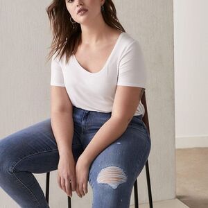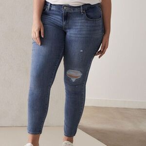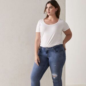 * Plus Size, Stretchy, Mid-rise, 5 Pocket Design, Zipper Fly, Distressed