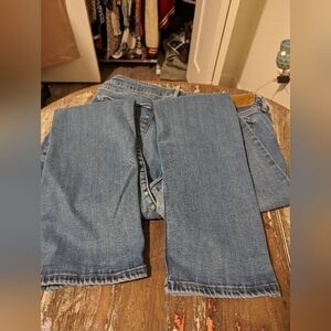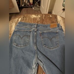 These Levi's Women's 712 Slim jeans in a light wash are perfect for casual outings or everyday wear. While they are moderately used and show a bit of love with a few rips in the crotch area, the jeans are priced accordingly and the rips are easily fixable. The slim fit offers a flattering silhouette, making them a versatile addition to your wardrobe!