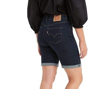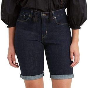Classics denim shorts for the classy woman these dark wash bermudas from Levi’s look fabulous and feel even better. Sit right at the waist, slim through hip and thigh. Inseam 10.5” rolled. Front rise 9.25”….back rise 14”…leg opening 17”. A leg lengthening fit with a slimming silhouette.Designed with Levi’s Sculpt for super soft wear.