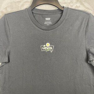Levis Womens Black Graphic Tee With Daisy Logo Size Small 100% Cotton
